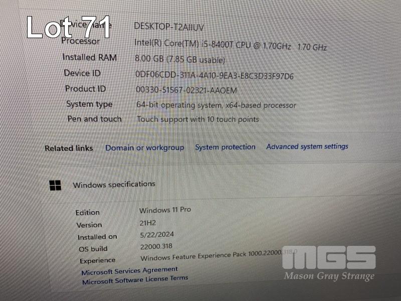 ALL-IN-ONE PC, LENOVO V530-24ICB, TYPE 10UW, CORE i5 8400T (8TH GEN) @ 1.7GHz, 8GB DDR4 RAM, 256GB NVMe M.2 SSD, INBUILT 23.8" TOUCHSCREEN (1920x1080), DVD-RW, INTEL UHD GRAPHICS 630, WEBCAM, Wi-Fi, BLUETOOTH, WINDOWS 11 PRO INSTALLED & POWER SUPPLY (NO KEYBOARD, NO MOUSE) S/N:MP1F677J