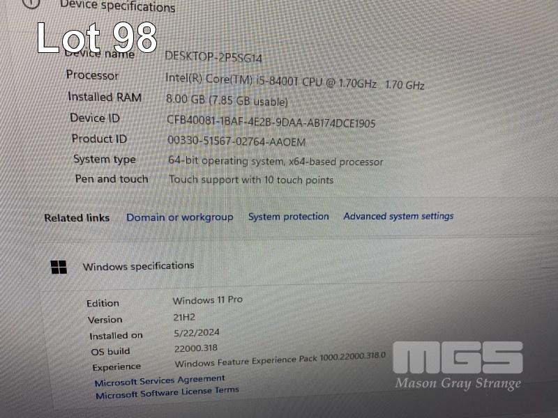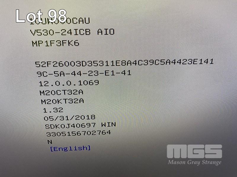 ALL-IN-ONE PC, LENOVO V530-24ICB, TYPE 10UW, CORE i5 8400T (8TH GEN) @ 1.7GHz, 8GB DDR4 RAM, 256GB NVMe M.2 SSD, INBUILT 23.8" TOUCHSCREEN (1920x1080), DVD-RW, INTEL UHD GRAPHICS 630, WEBCAM, Wi-Fi, BLUETOOTH, WINDOWS 11 PRO INSTALLED & POWER SUPPLY (NO KEYBOARD, NO MOUSE) S/N:MP1F3FK6