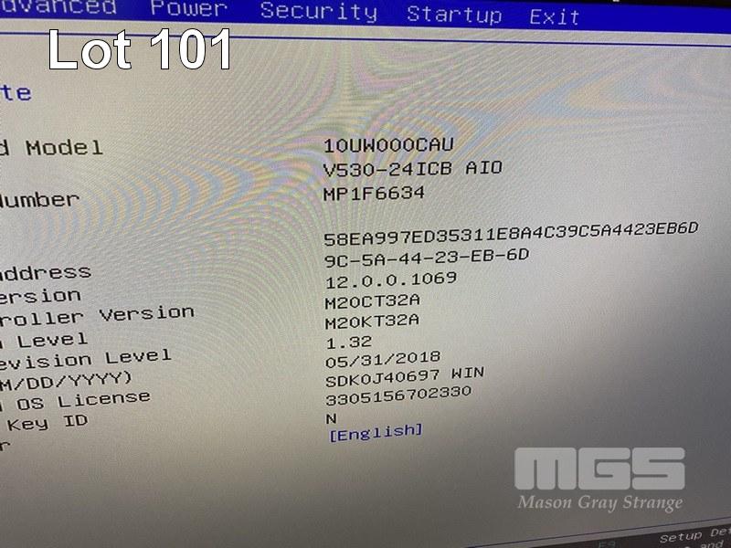 ALL-IN-ONE PC, LENOVO V530-24ICB, TYPE 10UW, CORE i5 8400T (8TH GEN) @ 1.7GHz, 8GB DDR4 RAM, 256GB NVMe M.2 SSD, INBUILT 23.8" TOUCHSCREEN (1920x1080), DVD-RW, INTEL UHD GRAPHICS 630, WEBCAM, Wi-Fi, BLUETOOTH, WINDOWS 11 PRO INSTALLED & POWER SUPPLY (NO KEYBOARD, NO MOUSE) S/N:MP1F6634