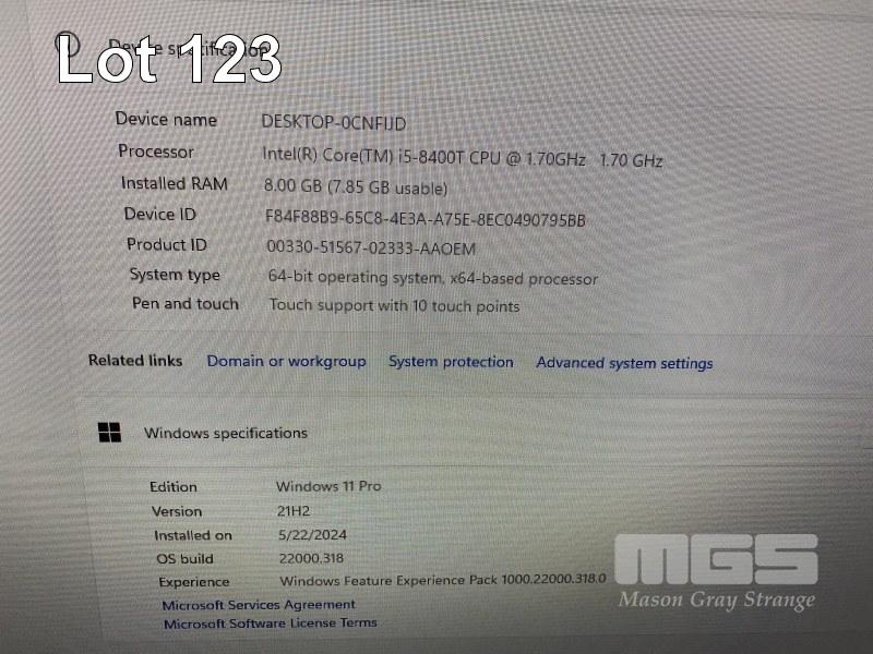 ALL-IN-ONE PC, LENOVO V530-24ICB, TYPE 10UW, CORE i5 8400T (8TH GEN) @ 1.7GHz, 8GB DDR4 RAM, 256GB NVMe M.2 SSD, INBUILT 23.8" TOUCHSCREEN (1920x1080), DVD-RW, INTEL UHD GRAPHICS 630, WEBCAM, Wi-Fi, BLUETOOTH, WINDOWS 11 PRO INSTALLED & POWER SUPPLY (NO KEYBOARD, NO MOUSE) (NOTE: SCRATCHES ON SCREEN) S/N:MP1F678A