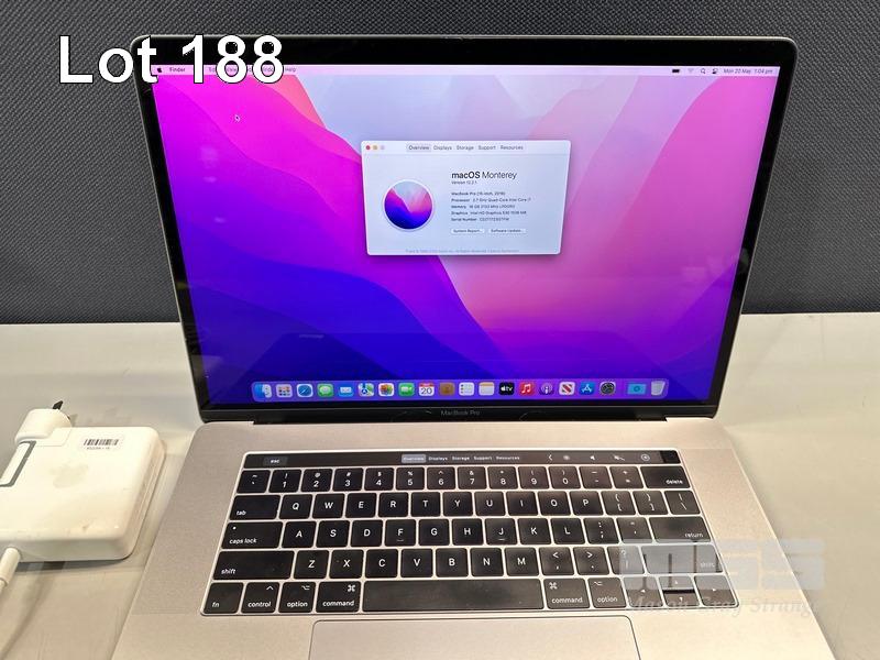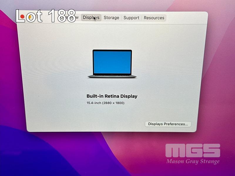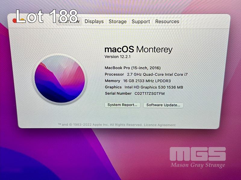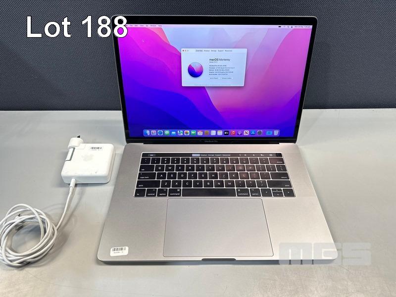 LAPTOP, APPLE MACBOOK PRO (A1707), CORE i7 6820HQ (6TH GEN) @ 2.7GHz, 16GB DDR3 RAM, 512GB SSD, 15.4" RETINA DISPLAY (2880x1800), INTEL HD GRAPHICS 630, Wi-Fi, BLUETOOTH, MAC OS 12 INSTALLED & USB-C POWER SUPPLY (NOTE: DAMAGE TO SCREEN FRAME, BATTERY SERVICE RECOMMENDED MESSAGE, MARKS ON SCREEN) S/N:C02T17ZSGTFM