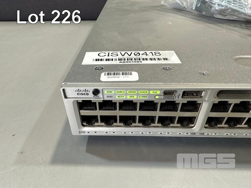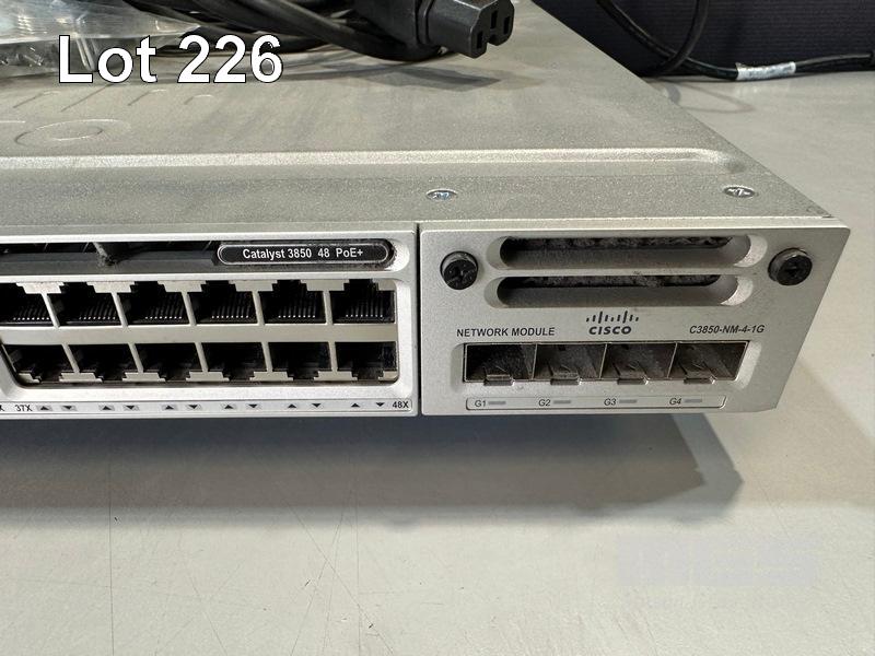 CISCO CATALYST 3850 48 PoE+ 48-PORT SWITCH, WS-C3850-48P-L V06 C3850-NM-4-1G NETWORK MODULE, 2 x PWR-C1-715WAC PSU WITH IEC-C14 TO C15 NOTCH POWER CABLES S/N:FOC1951U15D