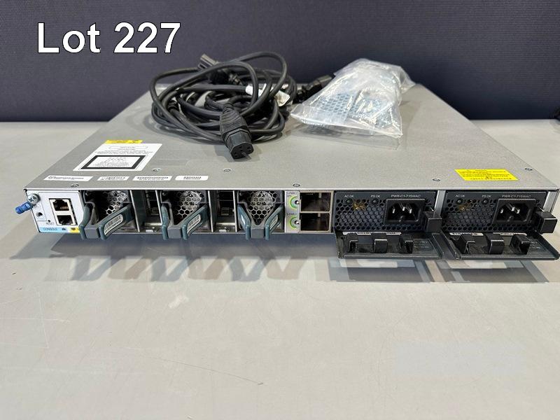 CISCO CATALYST 3850 48 PoE+ 48-PORT SWITCH, WS-C3850-48P-L V06 C3850-NM-4-1G NETWORK MODULE, 2 x PWR-C1-715WAC PSU WITH IEC-C14 TO C15 NOTCH POWER CABLES S/N:FCW1951C12Q