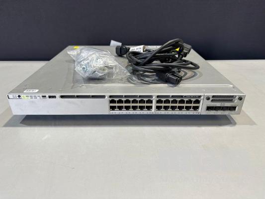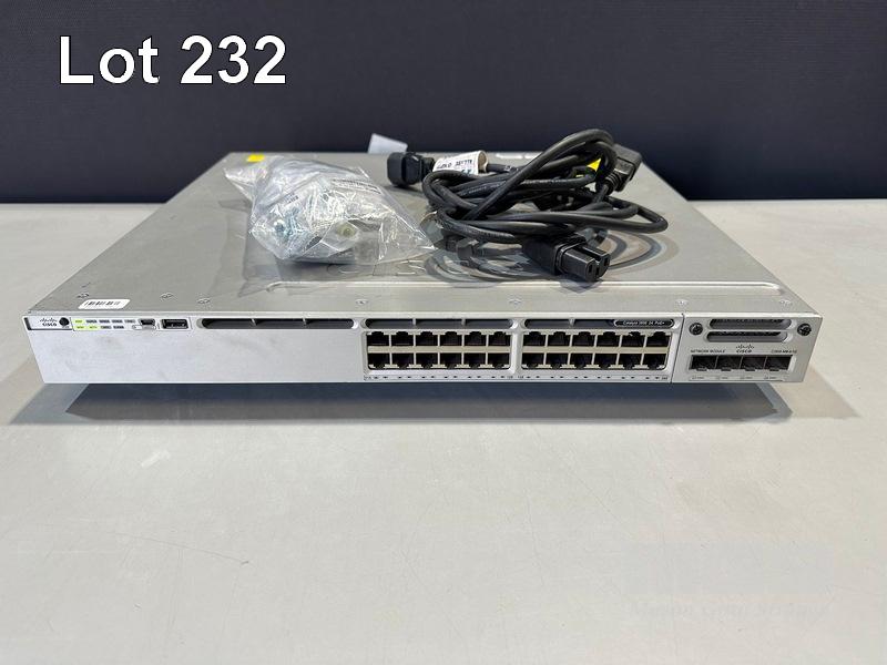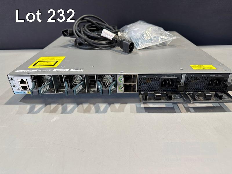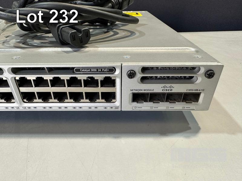 CISCO CATALYST 3850 24 PoE+ 24-PORT SWITCH, WS-C3850-24P-S V08 C3850-NM-4-1G NETWORK MODULE, 2 x PWR-C1-715WAC PSU WITH IEC-C14 TO C15 NOTCH POWER CABLES S/N:FCW2119F07H