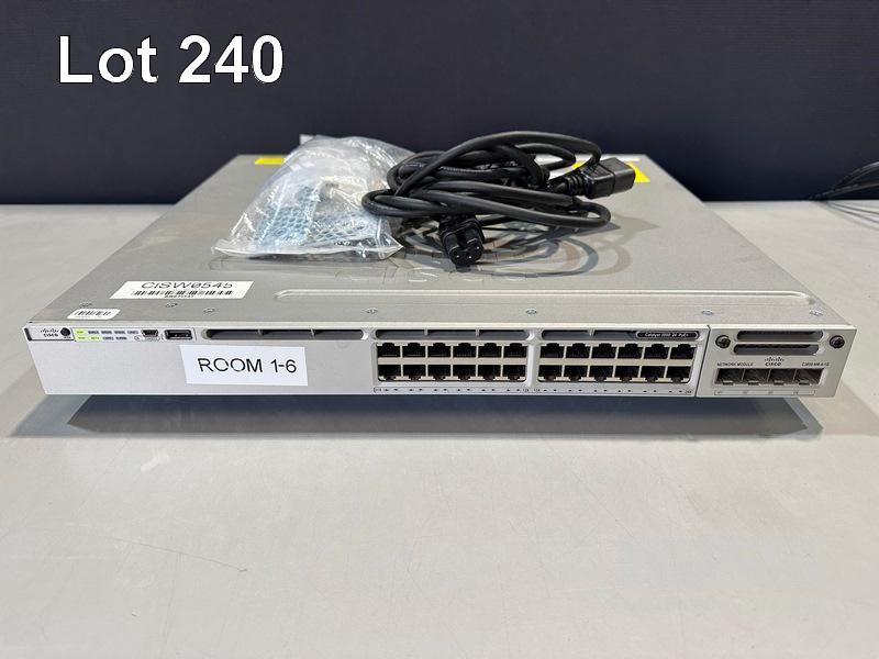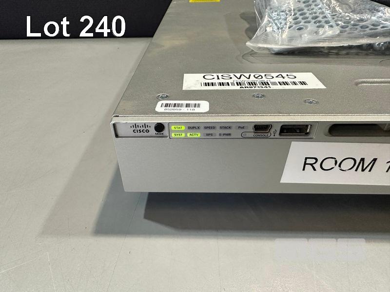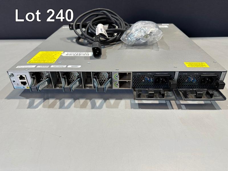CISCO CATALYST 3850 24 PoE+ 24-PORT SWITCH, WS-C3850-24P-L V08 C3850-NM-4-1G NETWORK MODULE, 2 x PWR-C1-715WAC PSU WITH IEC-C14 TO C15 NOTCH POWER CABLES S/N:FOC2201Q0LN