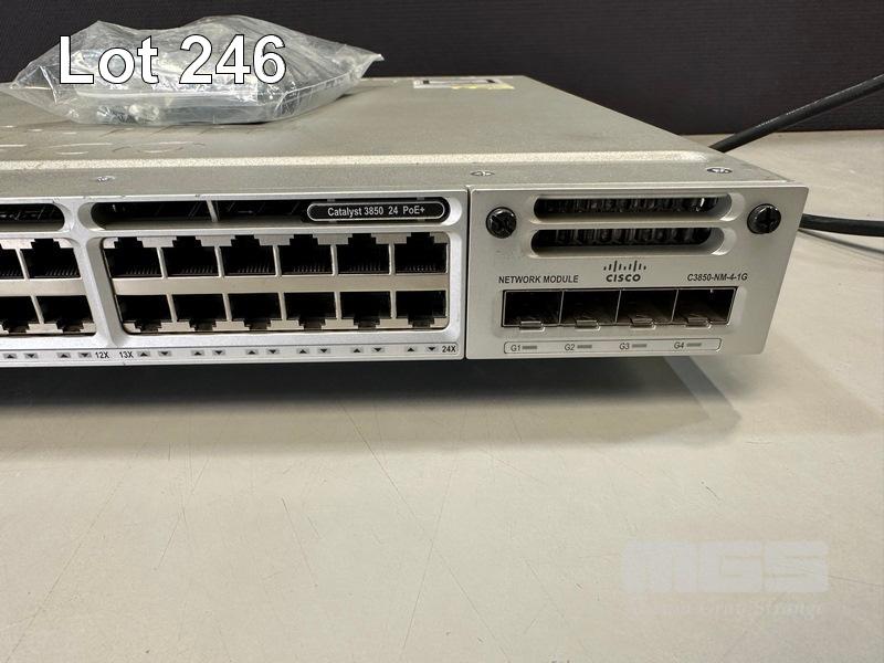 CISCO CATALYST 3850 24 PoE+ 24-PORT SWITCH, WS-C3850-24P-L V07 C3850-NM-4-1G NETWORK MODULE, 2 x PWR-C1-715WAC PSU WITH IEC-C14 TO C15 NOTCH POWER CABLES S/N:FCW1944C1SF