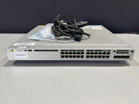 CISCO CATALYST 3850 24 PoE+ 24-PORT SWITCH, WS-C3850-24P-L V07 C3850-NM-4-1G NETWORK MODULE, 2 x PWR-C1-715WAC PSU WITH IEC-C14 TO C15 NOTCH POWER CABLES S/N:FOC1944U1NR