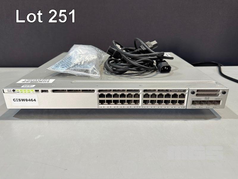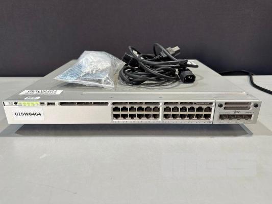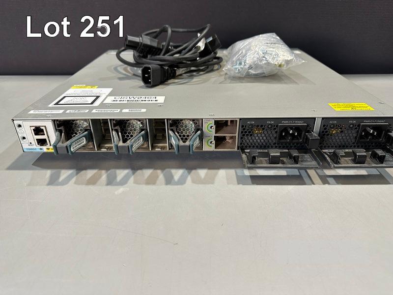 CISCO CATALYST 3850 24 PoE+ 24-PORT SWITCH, WS-C3850-24P-L V07 C3850-NM-4-1G NETWORK MODULE, 2 x PWR-C1-715WAC PSU WITH IEC-C14 TO C15 NOTCH POWER CABLES S/N:FOC1943U1T5