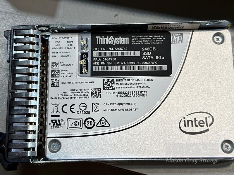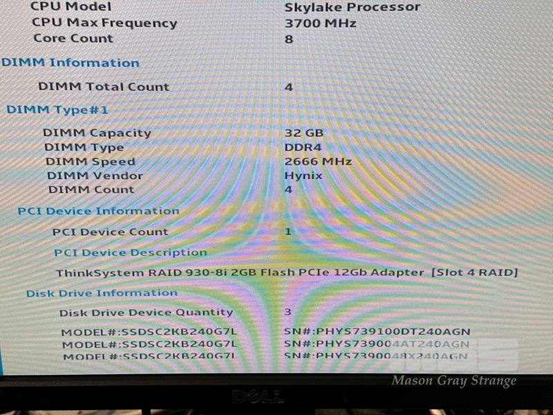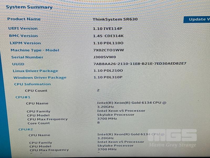 RACKMOUNT SERVER, LENOVO THINKSYSTEM SR630, 2U, 2 x XEON GOLD 6134 @ 3.2GHz, 128GB ECC DDR4 RAM, 3 x 240GB SSD, 2 x 750W PSU (NO CABLES) S/N:J3005VW0