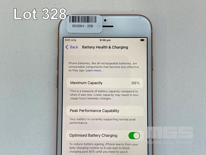 APPLE iPHONE 8, 256GB, GOLD, MODEL MQ7H2X/A, BATTERY HEALTH 88% (NO CABLE, NO CHARGER) S/N:C7CVHNKWJC6Q