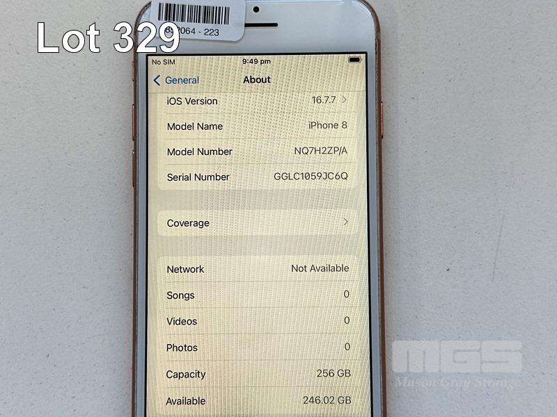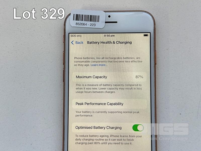 APPLE iPHONE 8, 256GB, GOLD, MODEL NQ7H2P/A, BATTERY HEALTH 87% (NO CABLE, NO CHARGER) S/N:GGLC1059JC6Q