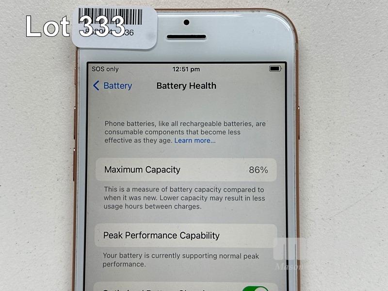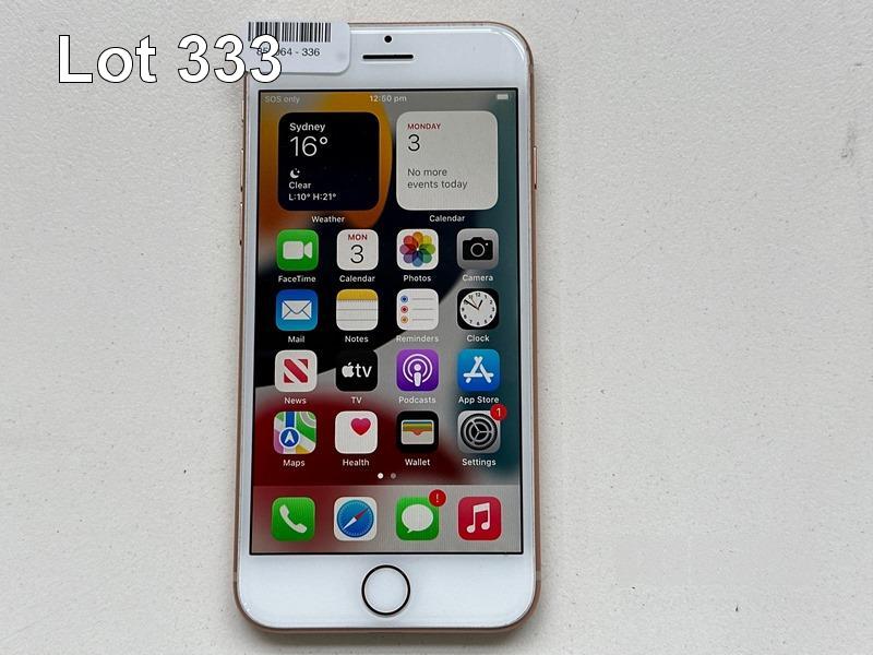 APPLE iPHONE 8, 256GB, GOLD, MODEL MQ7H2X/A, BATTERY HEALTH 86% (NO CABLE, NO CHARGER) S/N:C7CVHMHWJC6Q