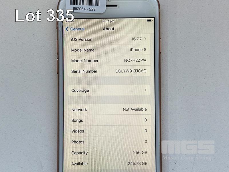 APPLE iPHONE 8, 256GB, GOLD, MODEL NQ7H2ZP/A, BATTERY HEALTH 85% (NO CABLE, NO CHARGER) S/N:GGLYW01JJC6Q