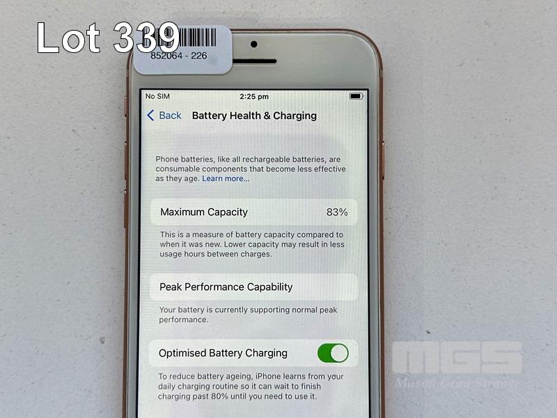 APPLE iPHONE 8, 256GB, GOLD, MODEL MQ7H2X/A, BATTERY HEALTH 83% (NO CABLE, NO CHARGER) S/N:C7CVH638JC6Q