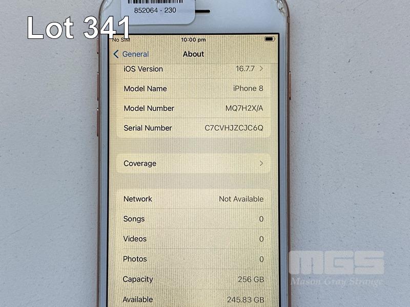 APPLE iPHONE 8, 256GB, GOLD, MODEL MQ7H2X/A, BATTERY HEALTH 83% (NO CABLE, NO CHARGER) (NOTE: DAMAGED CASING) S/N:C7CVHJZCJC6Q