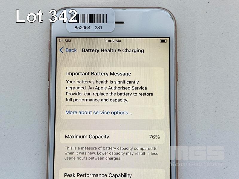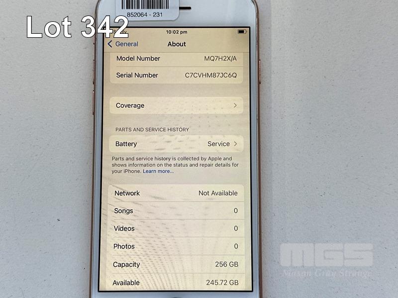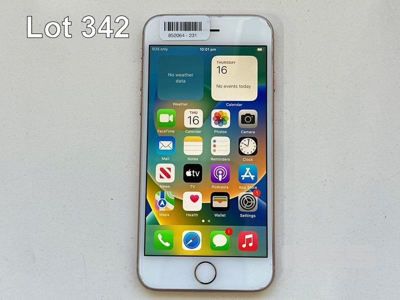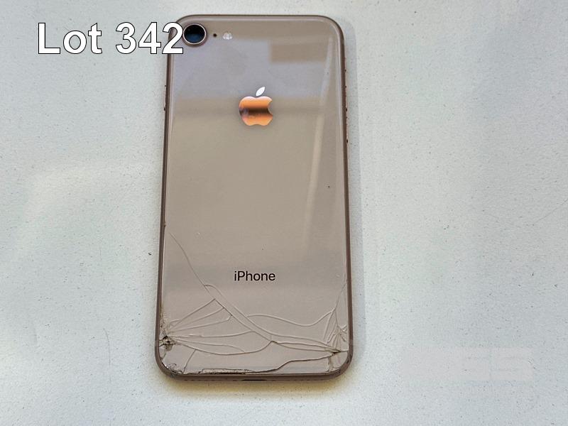 APPLE iPHONE 8, 256GB, GOLD, MODEL MQ7H2X/A, BATTERY HEALTH 76% (NO CABLE, NO CHARGER) (NOTE: DAMAGED CASING, BATTERY SERVICE MESSAGE) S/N:C7CVHM87JC6Q