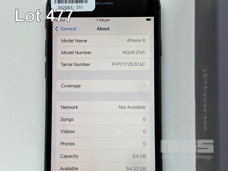 APPLE iPHONE 8, 64GB, SPACE GREY, MODEL MQ6K2X/A, BATTERY HEALTH 96% (NO CABLE, NO CHARGER) S/N:FFPYT7ZKJC6C