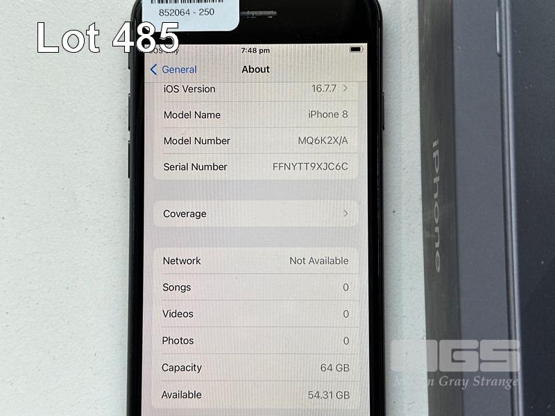 APPLE iPHONE 8, 64GB, SPACE GREY, MODEL MQ6K2X/A, BATTERY HEALTH 90% (NO CABLE, NO CHARGER) S/N:FFNYTT9XJC6C