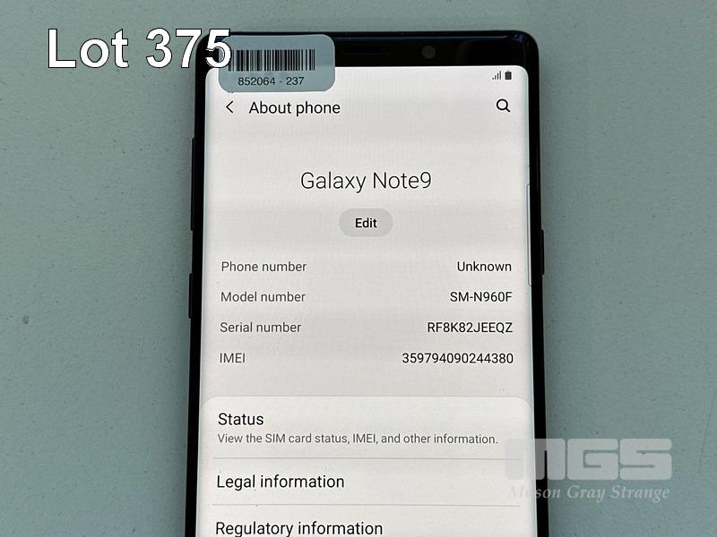 SAMSUNG GALAXY NOTE9 SMARTPHONE, 128GB, BLACK, MODEL SM-N960F (NO USB-C CABLE, NO CHARGER) S/N:RF8K82JEEQZ