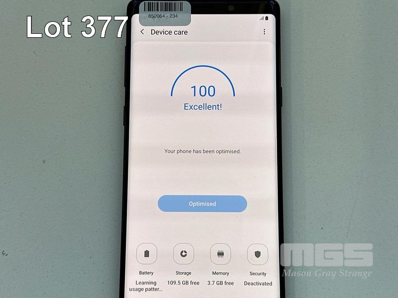 SAMSUNG GALAXY NOTE9 SMARTPHONE, 128GB, BLACK, MODEL SM-N960F (NO USB-C CABLE, NO CHARGER) S/N:RF8K8382XPE