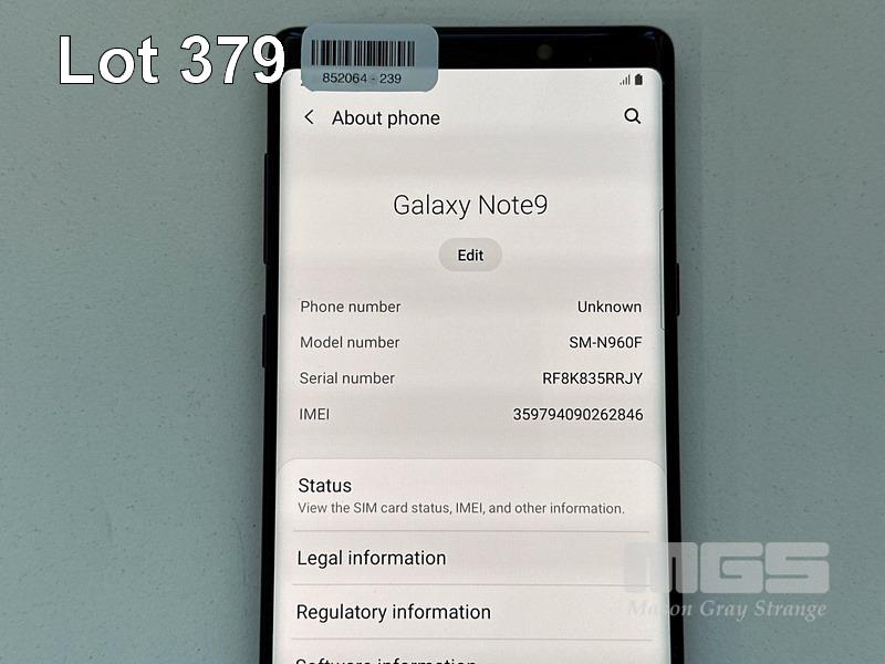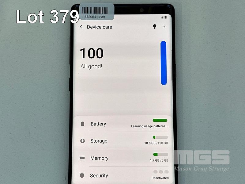 SAMSUNG GALAXY NOTE9 SMARTPHONE, 128GB, BLACK, MODEL SM-N960F (NO USB-C CABLE, NO CHARGER) S/N:RF8K835RRJY