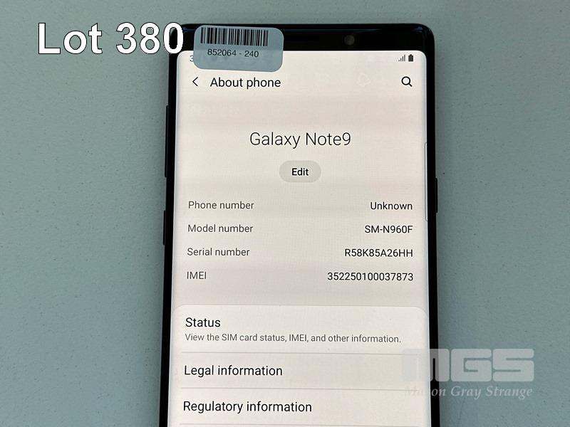 SAMSUNG GALAXY NOTE9 SMARTPHONE, 128GB, BLACK, MODEL SM-N960F (NO USB-C CABLE, NO CHARGER) S/N:R58K85A26HH