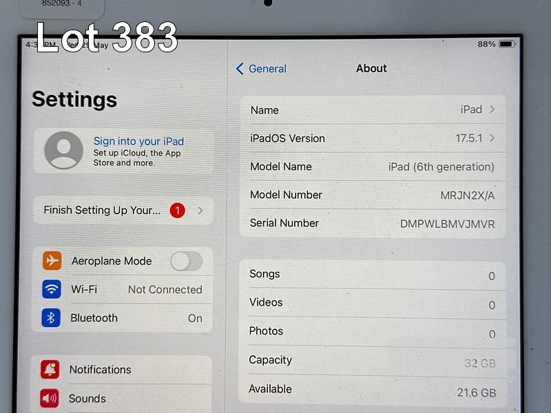APPLE iPAD 6TH GEN, 32GB, Wi-Fi, GOLD, MODEL MRJN2X/A, A1893 (NO CABLE, NO CHARGER) S/N:DMPWLBMVJMVR