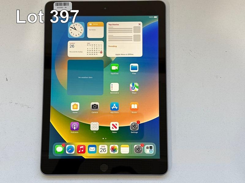 APPLE iPAD 5TH GEN, 32GB, Wi-Fi, SPACE GREY, MODEL MP2F2X/A, A1822 (NO CABLE, NO CHARGER) S/N:GCTVQXSRHLF9