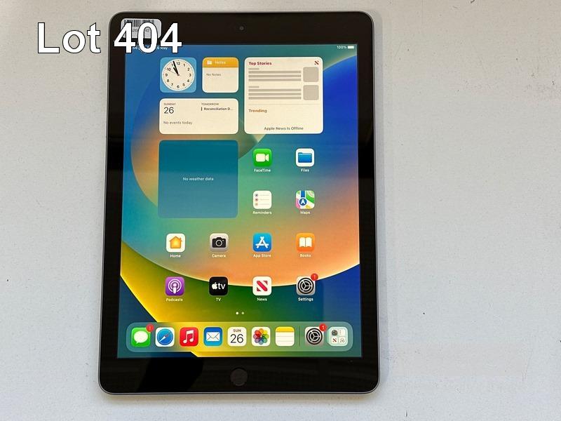 APPLE iPAD 5TH GEN, 32GB, Wi-Fi, SPACE GREY, MODEL MP2F2X/A, A1822 (NO CABLE, NO CHARGER) S/N:GCTVQ8B1HLF9
