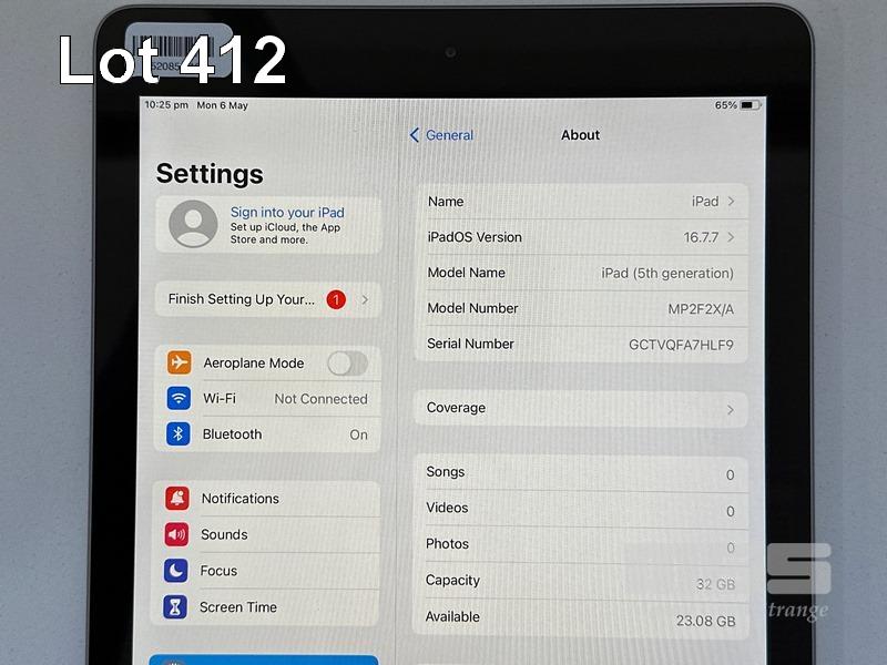 APPLE iPAD 5TH GEN, 32GB, Wi-Fi, SPACE GREY, MODEL MP2F2X/A, A1822 (NO CABLE, NO CHARGER) S/N:GCTVQFA7HLF9