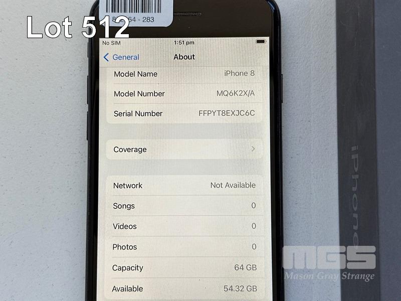 APPLE iPHONE 8, 64GB, SPACE GREY, MODEL MQ6K2X/A, BATTERY HEALTH 88% (NO CABLE, NO CHARGER) S/N:FFPYT8EXJC6C
