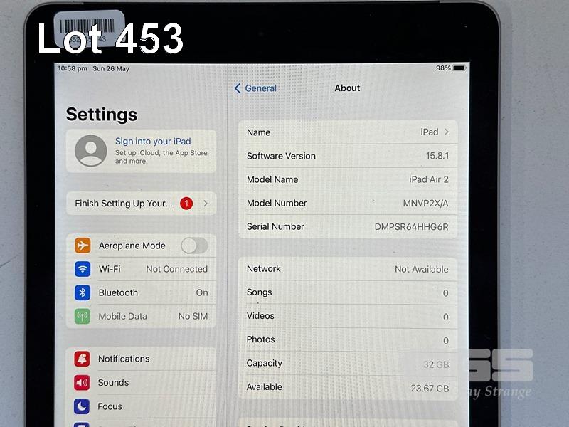 APPLE iPAD AIR 2, 32GB, Wi-Fi, CELLULAR, SPACE GREY, MODEL MNVP2X/A, A1567 (NO CABLE, NO CHARGER) S/N:DMPSR64HHG6R