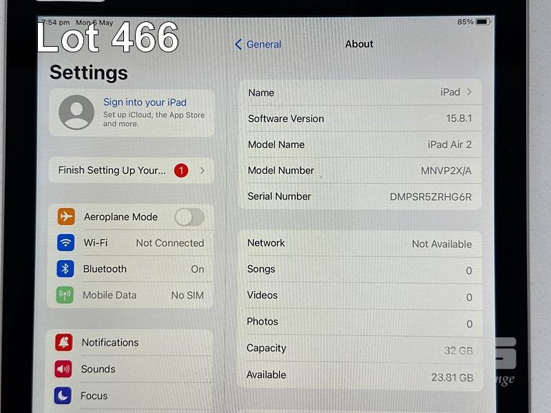 APPLE iPAD AIR 2, 32GB, Wi-Fi, CELLULAR, SPACE GREY, MODEL MNVP2X/A, A1567 (NO CABLE, NO CHARGER) S/N:DMPSR5ZRHG6R