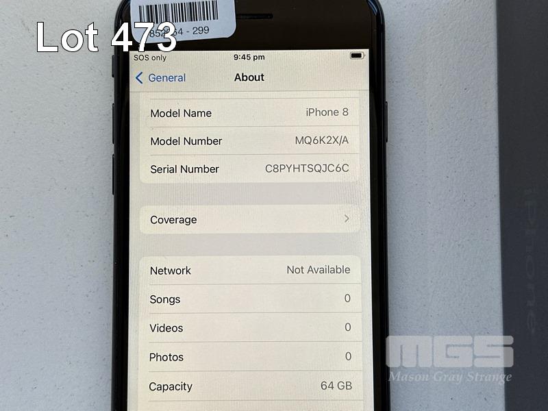 APPLE iPHONE 8, 64GB, SPACE GREY, MODEL MQ6K2X/A, BATTERY HEALTH 84% (NO CABLE, NO CHARGER) S/N:C8PYHTSQJC6C