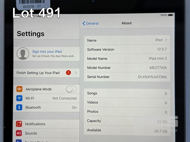 APPLE iPAD MINI 2, 32GB, Wi-Fi, SPACE GREY, MODEL ME277X/A, A1489 (NO CABLE, NO CHARGER) S/N:DLXNX9U4FCM6