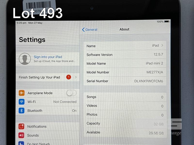 APPLE iPAD MINI 2, 32GB, Wi-Fi, SPACE GREY, MODEL ME277X/A, A1489 (NO CABLE, NO CHARGER) S/N:DLXNX9WCFCM6