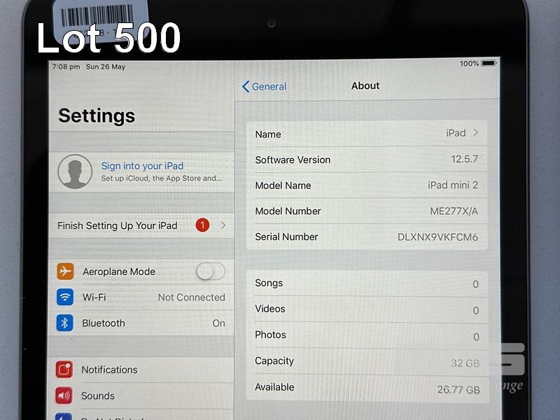 APPLE iPAD MINI 2, 32GB, Wi-Fi, SPACE GREY, MODEL ME277X/A, A1489 (NO CABLE, NO CHARGER) S/N:DLXNX9VKFCM6