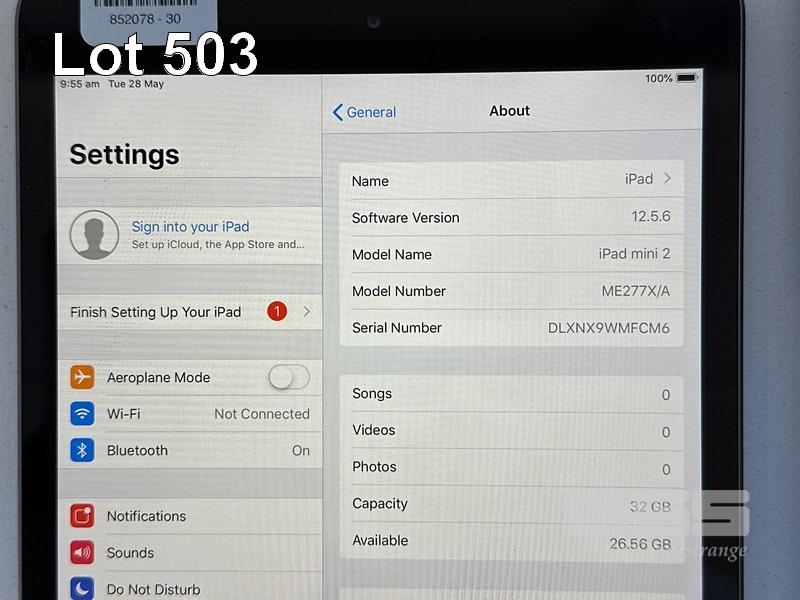 APPLE iPAD MINI 2, 32GB, Wi-Fi, SPACE GREY, MODEL ME277X/A, A1489 (NO CABLE, NO CHARGER) S/N:DLXNX9WMFCM6