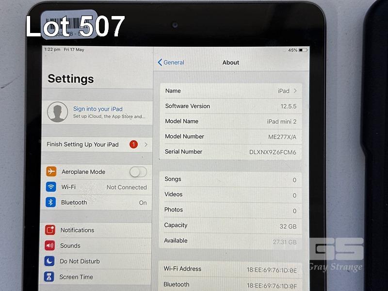 APPLE iPAD MINI 2, 32GB, Wi-Fi, SPACE GREY, MODEL ME277X/A, A1489 (NO CABLE, NO CHARGER) S/N:DLXNX9Z6FCM6