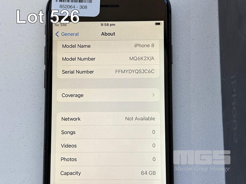 APPLE iPHONE 8, 64GB, SPACE GREY, MODEL MQ6K2X/A, BATTERY HEALTH 82% (NO CABLE, NO CHARGER) (NOTE: DAMAGED BACK) S/N:FFMYDYQSJC6C