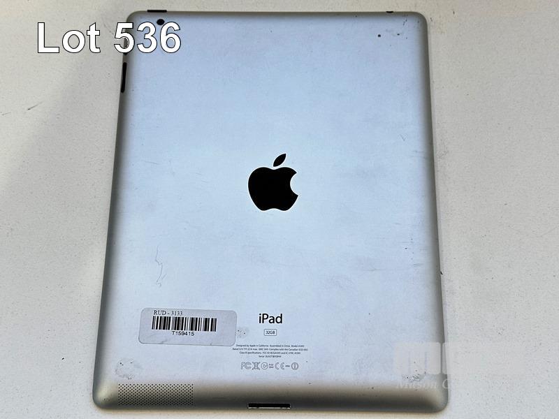 4 x APPLE iPAD 2, MODEL A1395 (2 x 16GB & 2 x 32GB) (NO CABLES, NO CHARGERS) (NOTE: 1 x WITH MINOR DAMAGE) S/N:DYTJCA6RDFHW, DYTJC765DFHW, DLXGT7WDFHY, DLXGT5BYDFHY