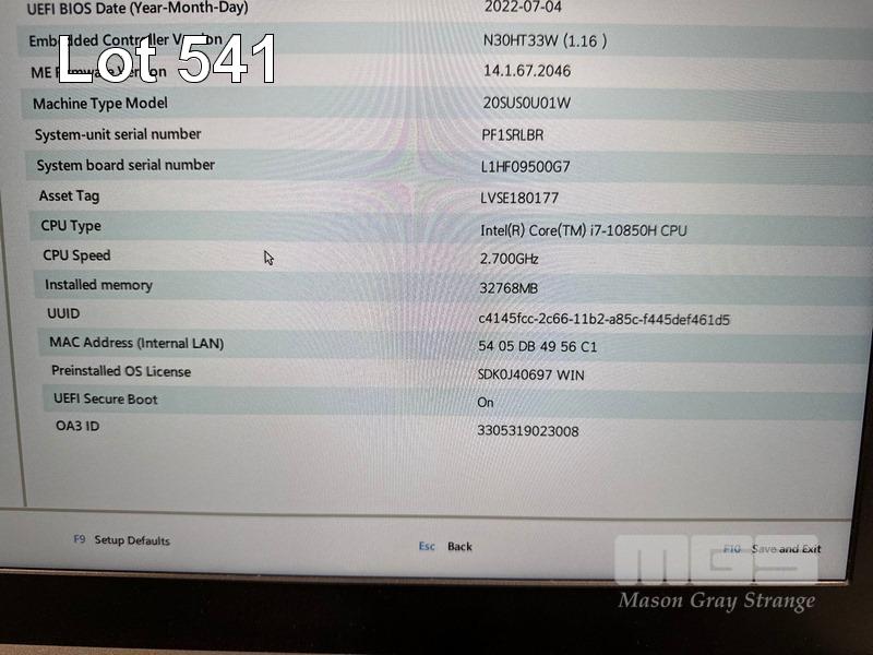 LAPTOP, LENOVO THINKPAD P15 GEN 1 MOBILE WORKSTATION, TYPE 20SU, CORE i7 10850H (10TH GEN) @ 2.7GHz, 32GB DDR4 RAM, 512GB NVMe M.2 SSD, 15.6" WIDESCREEN (1920x1080), 4GB NVIDIA QUADRO T2000 VIDEO, Wi-Fi, BLUETOOTH, WINDOWS 11 PRO INSTALLED & POWER SUPPLY (NOTE: MARKS ON SCREEN) S/N:PF1SRLBR