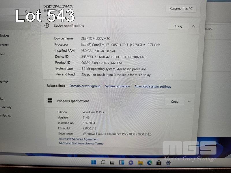 LAPTOP, LENOVO THINKPAD P15 GEN 1 MOBILE WORKSTATION, TYPE 20SU, CORE i7 10850H (10TH GEN) @ 2.7GHz, 16GB DDR4 RAM, 512GB NVMe M.2 SSD, 15.6" WIDESCREEN (1920x1080), 4GB NVIDIA QUADRO T2000 VIDEO, Wi-Fi, BLUETOOTH, WINDOWS 11 PRO INSTALLED & POWER SUPPLY S/N:PF1SRKZ1