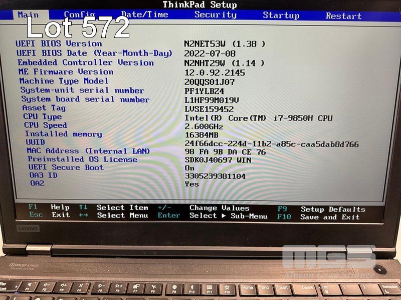LAPTOP, LENOVO THINKPAD P53 MOBILE WORKSTATION, TYPE 20QQ, CORE i7 9850H (9TH GEN) @ 2.6GHz, 16GB DDR4 RAM, 512GB NVMe M.2 SSD, 15.6" WIDESCREEN (1920x1080), 4GB NVIDIA QUADRO T2000 VIDEO, Wi-Fi, BLUETOOTH, WINDOWS 11 PRO INSTALLED & POWER SUPPLY (NOTE: MARKS ON SCREEN) S/N:PF1YLBZ4