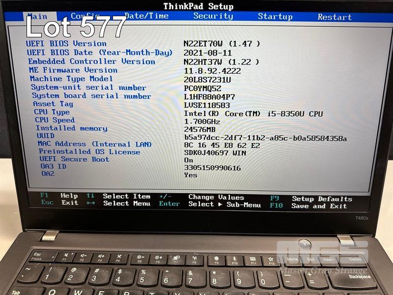 LAPTOP, LENOVO THINKPAD T480s, TYPE 20L8, CORE i5 8350U (8TH GEN) @ 1.7GHz, 24GB DDR4 RAM, 500GB NVMe M.2 SSD, 14" TOUCHSCREEN (1920x1080), INTEL HD VIDEO, Wi-Fi, BLUETOOTH, WINDOWS 11 PRO INSTALLED (NO USB-C POWER SUPPLY) (NOTE: MINOR MARKS ON SCREEN) S/N:PC0YMQ5Z