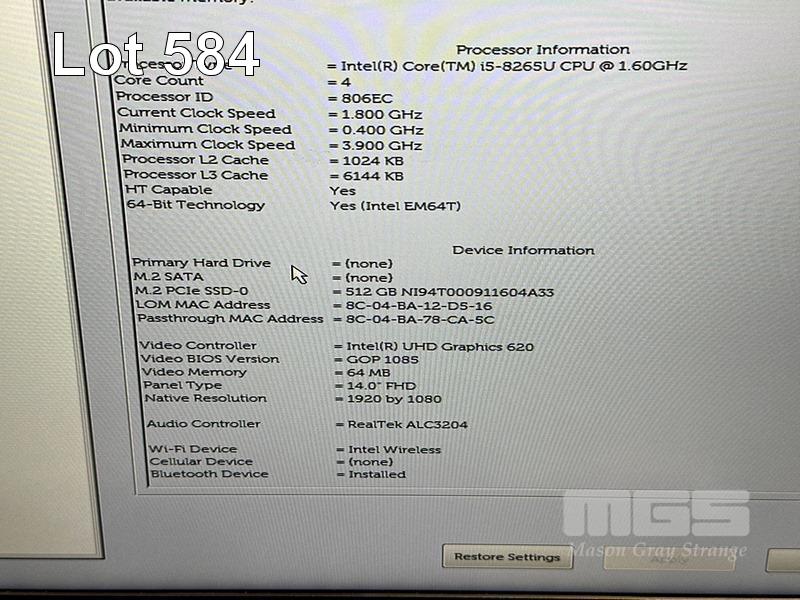 LAPTOP, DELL LATITUDE 5400, CORE i5 8265U (8TH GEN) @ 1.6GHz, 8GB DDR4 RAM, 512GB NVMe M.2 SSD, 14" WIDESCREEN (1920x1080), INTEL UHD GRAPHICS 620, Wi-Fi, BLUETOOTH, WINDOWS 11 HOME INSTALLED & POWER SUPPLY (NOTE: MARKS ON SCREEN) S/N:6FD53X2