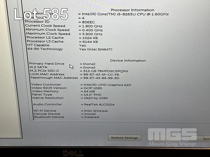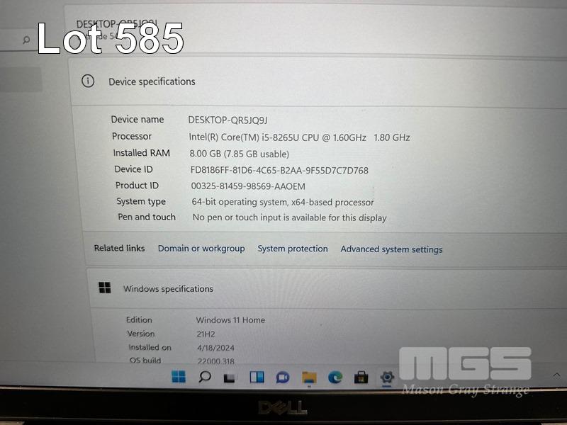 LAPTOP, DELL LATITUDE 5400, CORE i5 8265U (8TH GEN) @ 1.6GHz, 8GB DDR4 RAM, 512GB NVMe M.2 SSD, 14" WIDESCREEN (1920x1080), INTEL UHD GRAPHICS 620, Wi-Fi, BLUETOOTH, WINDOWS 11 HOME INSTALLED & POWER SUPPLY (NOTE: MARKS & SCRATCHES ON SCREEN) S/N:CVG32Z2