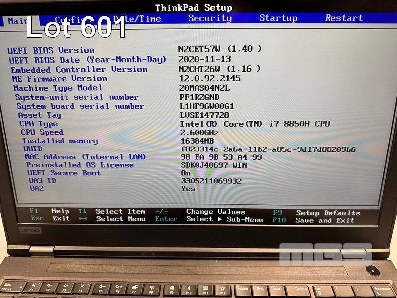 LAPTOP, LENOVO THINKPAD P52 MOBILE WORKSTATION, TYPE 20MA, CORE i7 8850H (8TH GEN) @ 2.6GHz, 16GB DDR4 RAM, 512GB NVMe M.2 SSD, 15.6" WIDESCREEN (1920x1080), 4GB NVIDIA QUADRO P2000 VIDEO, Wi-Fi, BLUETOOTH, WINDOWS 11 PRO INSTALLED, DOCKING STATION & POWER SUPPLY (NOTE: MARKS ON SCREEN) S/N:PF1RZGND