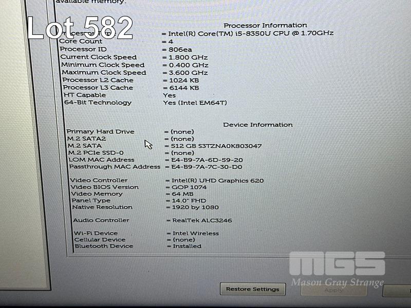 LAPTOP, DELL LATITUDE 5490, CORE i5 8350U (8TH GEN) @ 1.7GHz, 8GB DDR4 RAM, 512GB M.2 SSD, 14" WIDESCREEN (1920x1080), INTEL UHD GRAPHICS 620, Wi-Fi, BLUETOOTH, WINDOWS 11 HOME INSTALLED & POWER SUPPLY (NOTE: MINOR MARKS ON SCREEN) S/N:4WHW5S2