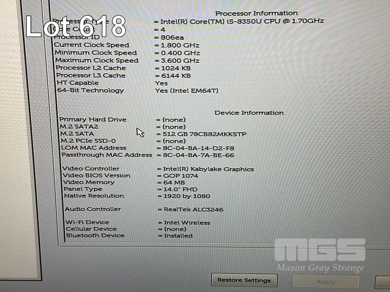 LAPTOP, DELL LATITUDE 5490, CORE i5 8350U (8TH GEN) @ 1.7GHz, 8GB DDR4 RAM, 512GB M.2 SSD, 14" WIDESCREEN (1920x1080), INTEL UHD GRAPHICS 620, Wi-Fi, BLUETOOTH, WINDOWS 11 HOME INSTALLED & POWER SUPPLY (NOTE: MARKS ON SCREEN) S/N:78MWRQ2